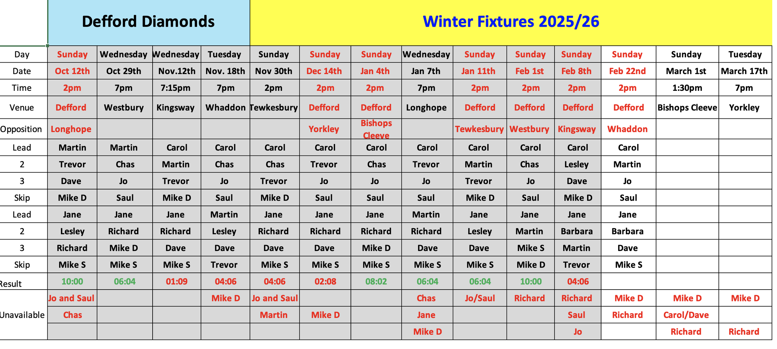 Defford Short Mat Bowls Club , playing in Gloucestershire leagues, (see GSMBA website )