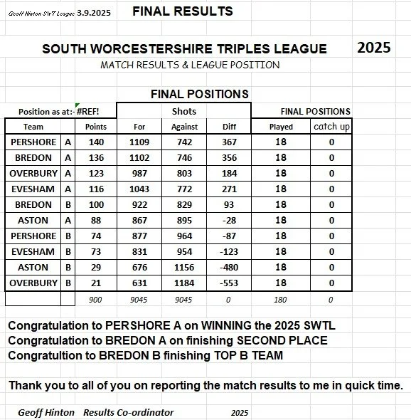 Les Thomas Triples- Bredon Tigers - 2 Triples (Ladies)/ 18 ends